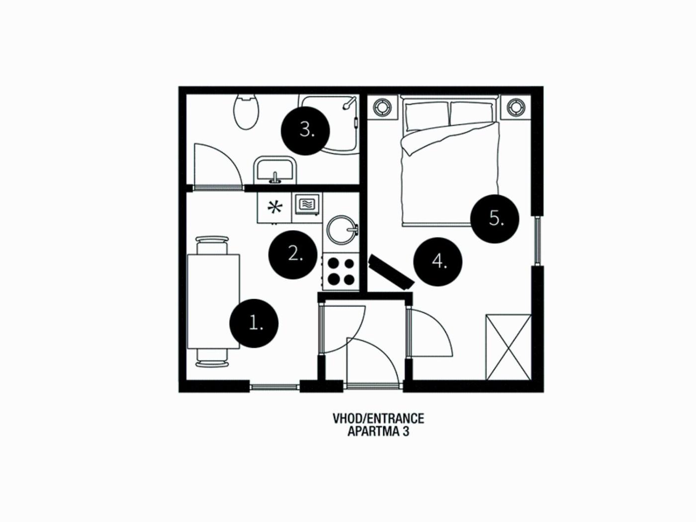 A3 - Small One-Bedroom Apartment with Terrace - Ground Floor. This stylishly appointed apartment is located on the ground floor and features central heating, a well-appointed kitchen with a dining area, as well as a seating area with a flat-screen TV. A private bathroom comprises a shower, a hairdryer and free toiletries. Bed linen and towels are provided. Please note that extra beds are not available in this room type. ;