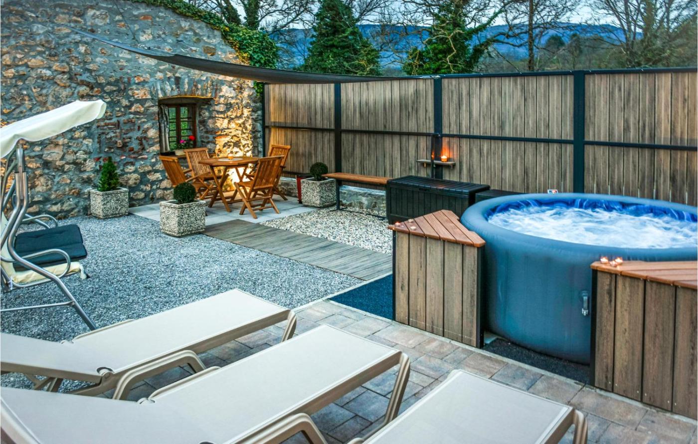 Three-Bedroom Holiday Home. This holiday home features a hot tub. Boasting a private entrance, this air-conditioned holiday home includes 1 living room, 3 separate bedrooms and 2 bathrooms with a bath and a shower. Guests will find a stovetop, a refrigerator, a dishwasher and kitchenware in the fully equipped kitchen. The holiday home also features a barbecue. The holiday home offers a washing machine, a tea and coffee maker, a dining area along with outdoor furniture. The unit has 4 beds.