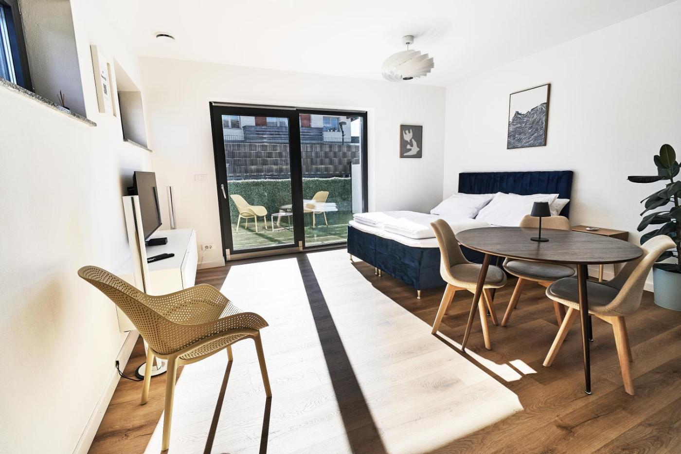 One-Bedroom Apartment. The air-conditioned apartment features 1 bedroom and 1 bathroom with a shower and a hairdryer. Meals can be prepared in the well-fitted kitchen, which comes with a stovetop, a refrigerator, kitchenware and an oven. Featuring a terrace with garden views, this apartment also provides a washing machine and a flat-screen TV with streaming services. The unit offers 1 bed.