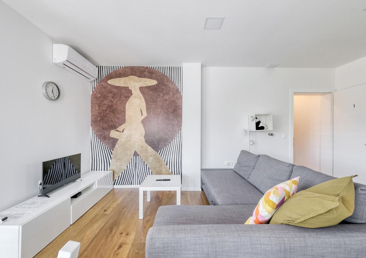 One-Bedroom Apartment with Balcony. The air-conditioned apartment features 1 bedroom and 1 bathroom with a shower and a hairdryer. Meals can be prepared in the well-fitted kitchen, which is equipped with a stovetop, a refrigerator, a dishwasher and kitchenware. Featuring a balcony with garden views, this apartment also provides a washing machine and a flat-screen TV with cable channels. The unit offers 2 beds. ;